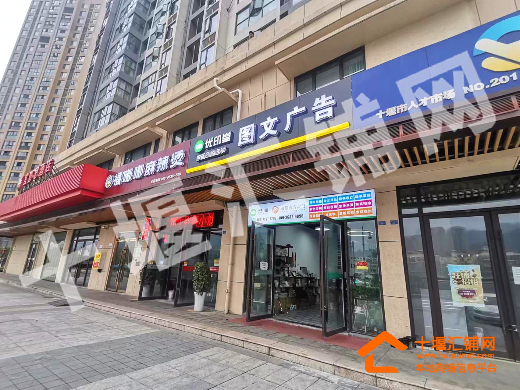 本店位于成邦·华夏公馆商业街临街好位置!地处北京南路成熟老商圈,地理位置优越,交通便利,人流量集中附近被多个大型小区环绕,入住率高,紧邻十堰火车站南北广场,人流量大且集中。门前有大量停车位,停车非常方便,旁边就是做汽车养护的,商圈发展空间巨大!周边大型商业体、高档小区林立,本店目前主要经营图文广告店,门头大气醒目,店内精装修,上下水已通,格局方正通透,总面积60㎡,月租金2500元/月,优先考虑整转,也适合经营各类餐饮生意,快递驿站,超市便利店,美容美发等各种行业,无任何限制!
